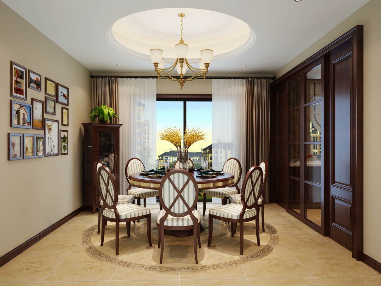 美式的装修风格,室内空间通过开放式的设计营造明亮舒适的生活环境。空间巧妙的将生活阳台纳入室内范畴中,通过明亮的落地窗带入柔和光线,也起到放大空间感的效果。整体空间内以咖啡色为空间主色调,搭配优雅的线条设计,创造丰富的视觉美感。